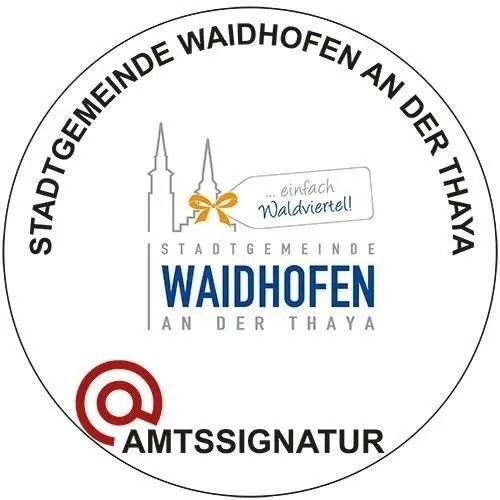 Die grafische Gestaltung der Bildmarke obliegt der jeweiligen Behörde. Aus Bürgersicht ist es aber empfehlenswert, dass sich Behörden beim Erstellen der Bildmarke an einem einheitlichen Design orientieren. Die Stadtgemeinde Waidhofen an der Thaya verwendet deshalb folgende Darstellung als Bildmarke für die Amtssignatur.